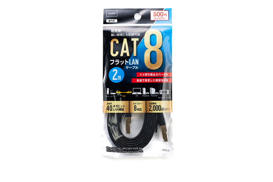 超速フラットLANケーブルCAT8 2m
